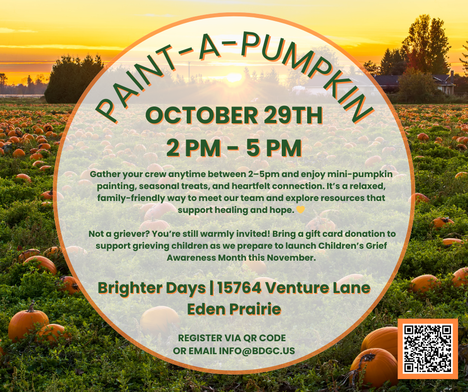 Gather your crew anytime between 2–5pm and enjoy mini-pumpkin painting, seasonal treats, and heartfelt connection. It’s a relaxed, family-friendly way to meet our team and explore resources that support healing and hope. 💛