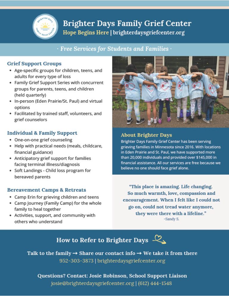 When a parent or guardian reaches out to let you know about a family members death, use our helpful flyer to provide information to them about our support and resources. You can download it HERE.