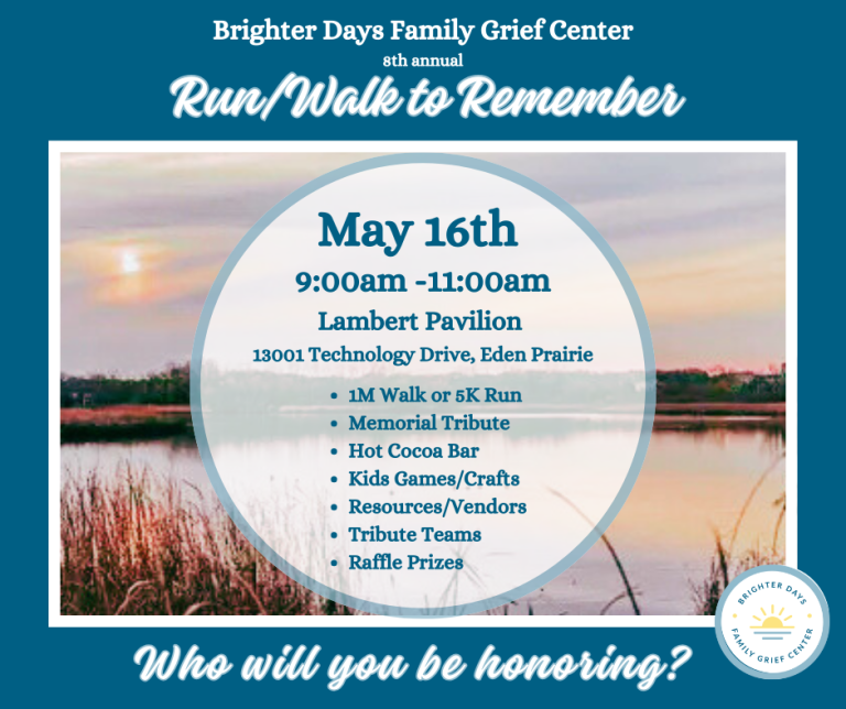 Brighter Days is proud to be the catalyst in bringing Children’s Grief Awareness Day to the state of Minnesota. Please visit our page HERE to learn more about our efforts and read the proclamation signed by our Governor. Whether we are educating schools, organizations, or families, we will continue to advocate on behalf of all grieving children and families to create a more compassionate society. If you would like to place a complimentary yard sign at your home or place of business, please contact us at info@bdgc.us